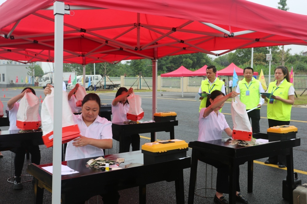 點(diǎn)鈔技能比武現(xiàn)場(chǎng),6名參賽者手指翻飛,雖然現(xiàn)場(chǎng)觀眾眾多,但絲毫未影響其點(diǎn)鈔速度,她們憑借專注的精神和嫻熟的技能,充分展現(xiàn)著“老司機(jī)”的實(shí)力。最終,市公交集團(tuán)營業(yè)中心全云以4分02秒的速度和100%的正確率斬獲冠軍。